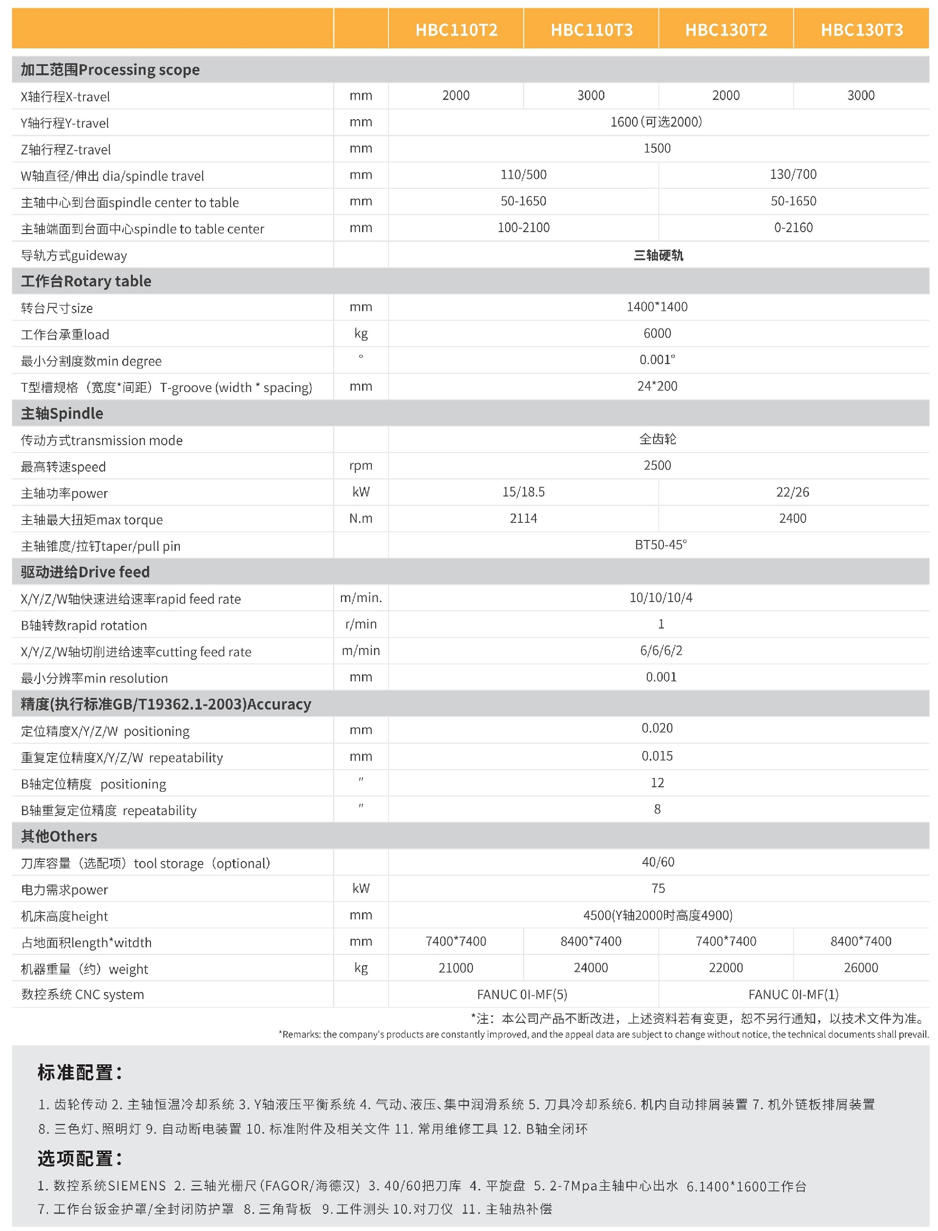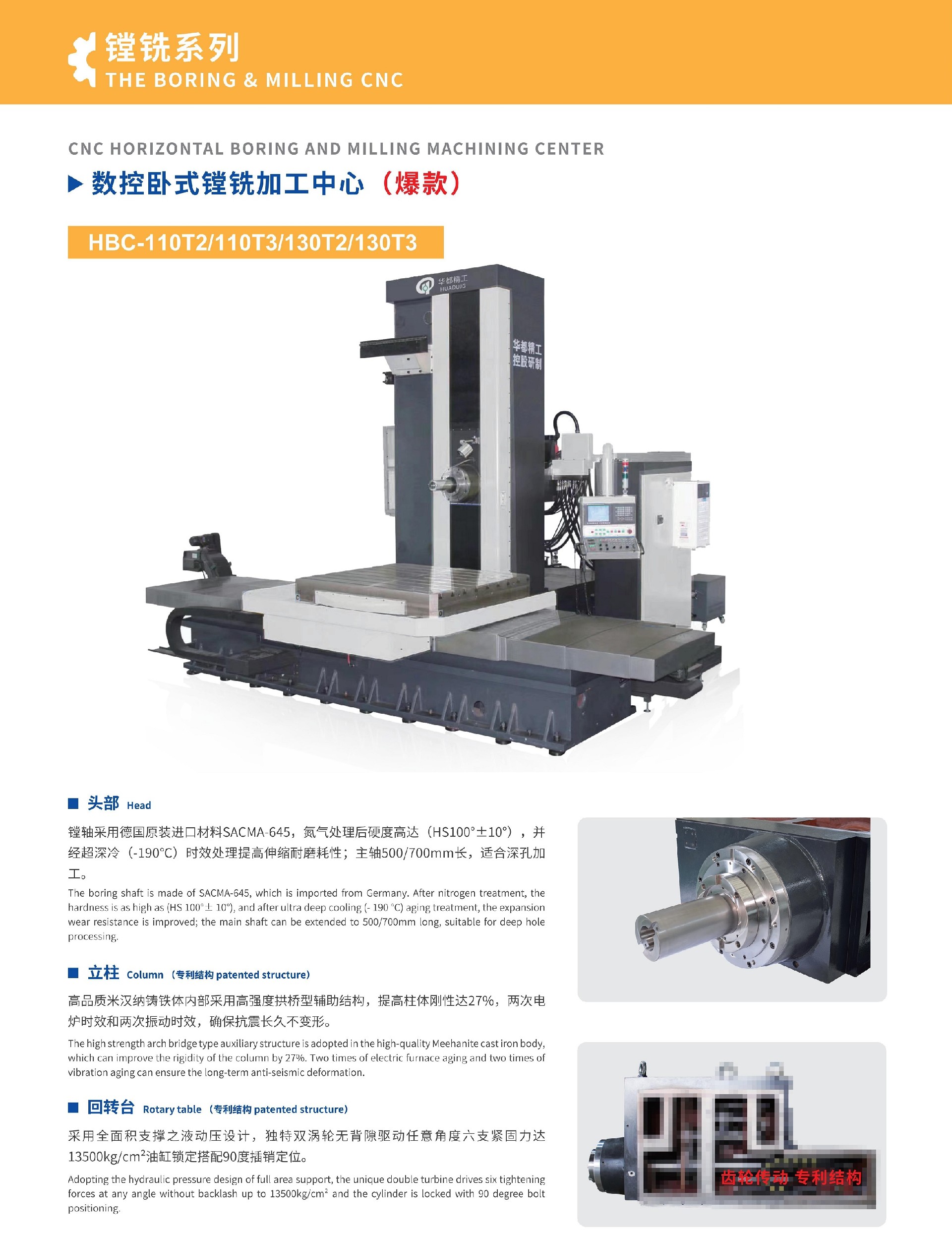 頭部 :鏜軸采用德國原裝進(jìn)口材料SACMA-645,氮?dú)馓幚砗笥捕雀哌_(dá)(HS100°士10°),并經(jīng)超深冷(-190°C)時(shí)效處理提高伸縮耐磨耗性;主軸500/700mm長,適合深孔加工。立柱:高品質(zhì)米漢納鑄鐵體內(nèi)部采用高強(qiáng)度拱橋型輔助結(jié)構(gòu),提高柱體剛性達(dá)27%,兩次電爐時(shí)效和兩次振動(dòng)時(shí)效,確??拐痖L久不變形; 回轉(zhuǎn)臺(tái):采用全面積支撐之液動(dòng)壓設(shè)計(jì),獨(dú)特雙渦輪無背隙驅(qū)動(dòng)任意角度六支緊固力達(dá)13500kg/cm2油缸鎖定搭配90度插銷定位。